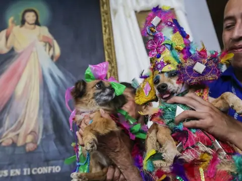 Tradición en San Lazaro, Masaya, Nicaragua. Miles de personas acompañados de su perro acuden al desfile de procesión de San Lázaro para que el santo les cure todas sus enfermedades. Sus dueños hacen la ofrenda para pagar la cura